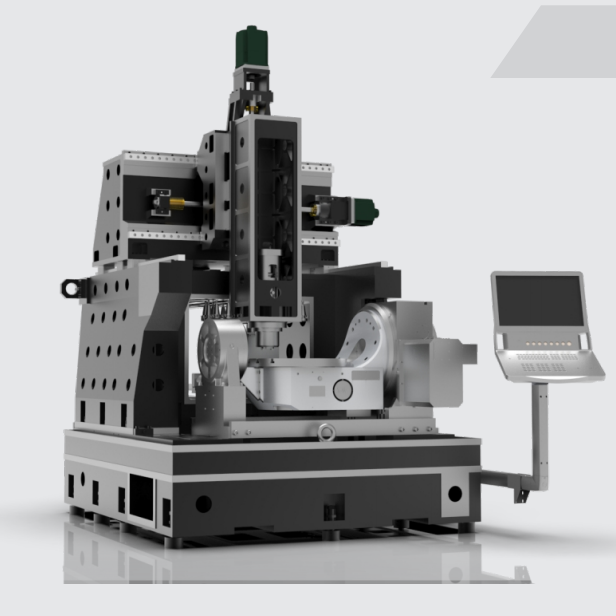 天车型五轴联动加工中心可实现工件一次装夹就可完成五个面的加工,同时运行精度和刚性切削